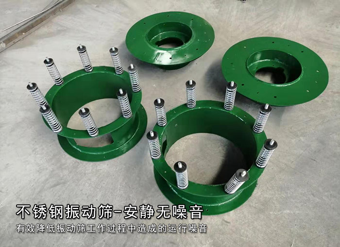 不銹鋼振動篩采用減震彈簧技術,可有效降低振動篩在因工作過程中產生的振動力對機架所造成的運行噪音,安靜生產,對機架的長久穩定完全起到保護的作用。