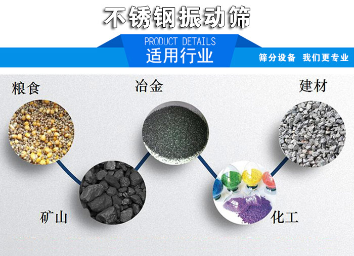 不銹鋼振動篩可篩分面粉、玉米、紅豆、綠豆、大米、稻谷、大豆食用油、調和油、味精、雞精、醬油、芝麻,糖粉、淀粉、食鹽、米粉、奶粉、豆漿、蛋粉、醬油、果汁等營養飲品等等。