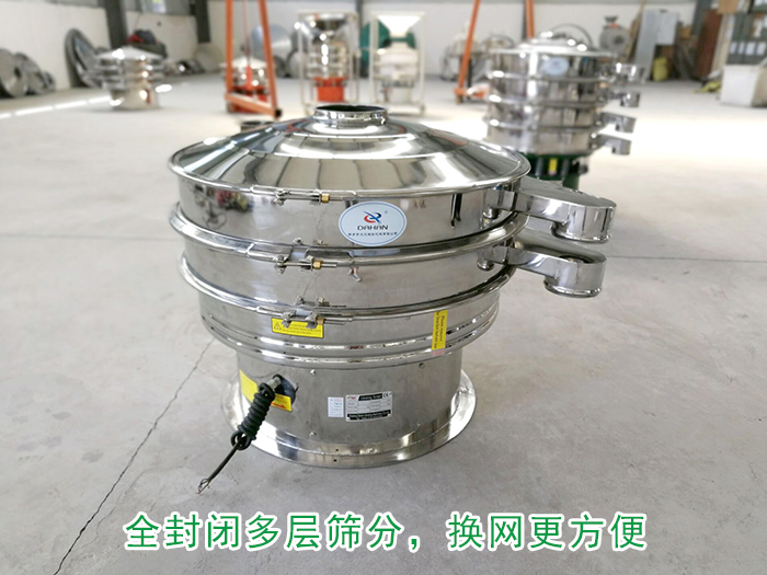 1000型不銹鋼振動篩采用全封閉篩分結構,可有效防止篩分過程中花椒粉外泄造成的粉塵飛揚,污染篩分現場環境問題。與物料接觸部分采用不銹鋼304材質,經過嚴格的拋光處理,焊接之處也經過打磨而成,符合食品行業衛生要求,篩網采用子母網結構,換網非常方便,可篩分多種不同規格的花椒粉,篩網層數可達5層。