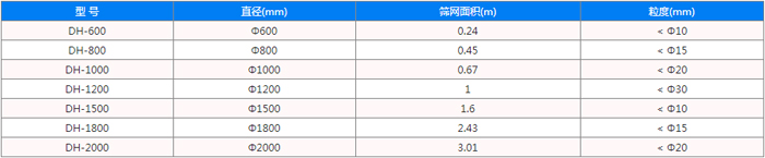 不銹鋼振動篩型號有DH-400、DH-600、DH-800、DH-1000、DH-1200、DH-1500、DH-1800、DH-2000等標準直徑型號,平均單次篩分醫(yī)藥物料產(chǎn)量可達1-5t,滿足醫(yī)藥篩分高產(chǎn)量的需求。還可根據(jù)需求特殊定制。