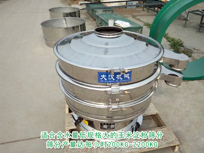 不銹鋼振動篩可篩分200目以內(nèi)的玉米淀粉,整機采用全封閉結構精選304不銹鋼材質,與物料接觸部分無雜質污染,密封件選用硅膠材質符合食品衛(wèi)生標準,篩網(wǎng)層數(shù)可達5層。能篩分出六種規(guī)格不同的玉米淀粉,篩分精度70%左右,適合含水量低規(guī)格大的玉米淀粉篩分。篩分產(chǎn)量達每小時200KG-2200KG