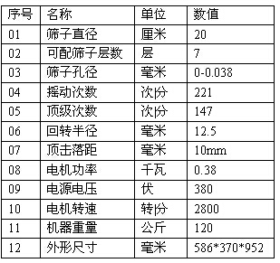 頂擊式標(biāo)準(zhǔn)振篩機又名頂擊式標(biāo)準(zhǔn)振篩機,擊式振篩機配套試驗篩規(guī)格為¢200mm。符合建材、地質(zhì)、交通,化工等等行業(yè)有關(guān)測試規(guī)范和要求。利用偏心的原理使機器的平臺面發(fā)生有規(guī)律震動和頂擊,主要配套標(biāo)準(zhǔn)分樣篩使用,代替手工篩,篩分物料的級別。具有時間標(biāo)準(zhǔn)、力度、頻率均勻的優(yōu)點以達到良好的篩分效果,適用于建筑、公路,地質(zhì)、冶金、化工、煤炭、磨料、食品、飼料,醫(yī)藥等部門的實驗室或化驗室對顆粒物料進行篩分分析,該機可以配各種規(guī)格的方孔、園孔標(biāo)準(zhǔn)套篩,是生化實驗室、分析室、教育科研的必備設(shè)備。