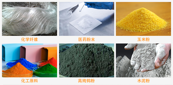 冶金行業:鋁粉、銅粉、合金粉、二氧化錳、電磁性材料、耐火材料、氧化鋁、石英砂、氧化鈦、氧化鋅、金屬粉末、焊條粉末等