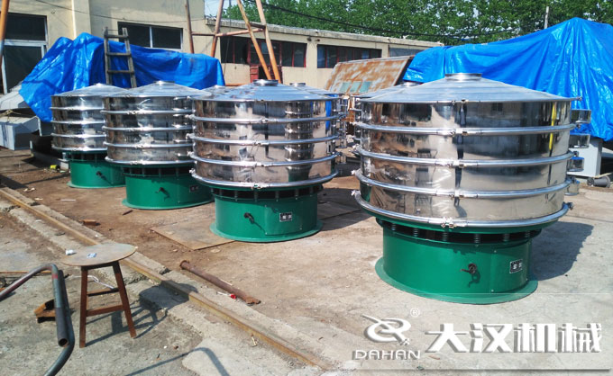 3、關于“大漢牌振動篩”:"大漢"DH系列振動篩產品,經客戶多年使用,獲得大量的一線反饋建議,在自有成熟的篩機制造技術基礎上,大漢機械工程師以滿足客戶需求為標準,多次技術改進,篩分效果更加優越,采用"通用"新型動力激振器,三維動力更加突出,適用范圍更加廣泛,大漢機械公司可根據客戶需求設計特殊型號,無論物料是干是濕,是精細是粗糙,是比重大是比重輕,0-400目都可以篩選,不管是液態,還是漿狀的0-600目都可以過濾。"大漢"旋振篩系列產品同時配備專門的篩網清理裝置,把堵網率降到低,過網率和處理精度得以有效提高。"大漢"具備特殊型號制造的能力讓顧客對"大漢"有更多的選擇。